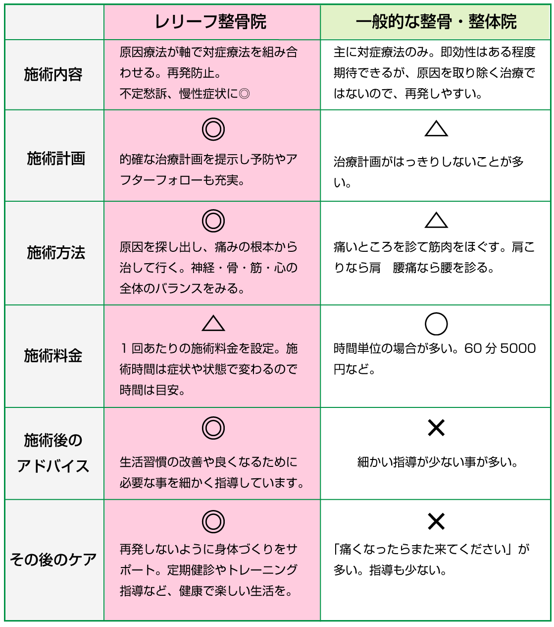 レリーフ整骨院と他店との違い
